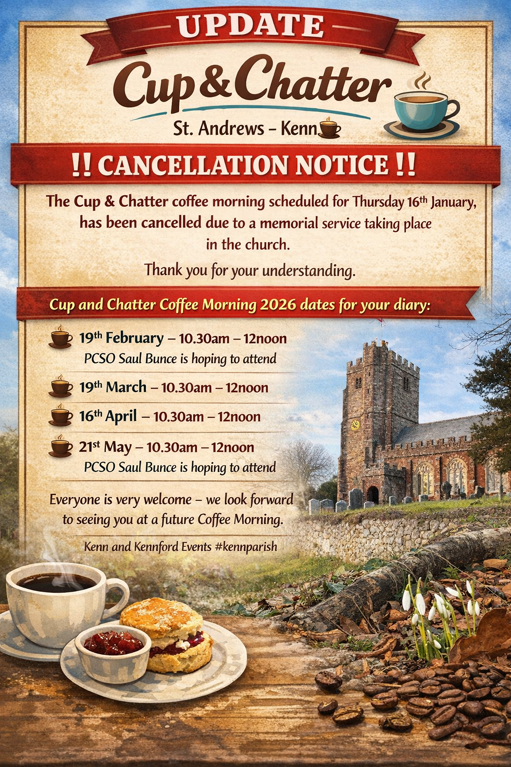 Until then, join us on the third Thursday of every month for our Cup and Chatter coffee mornings. These take place from 10.30am to 12noon. See poster, church noticeboards and our Facebook page for more details. We look forward to enjoying a homemade bake and fresh coffee with you soon.